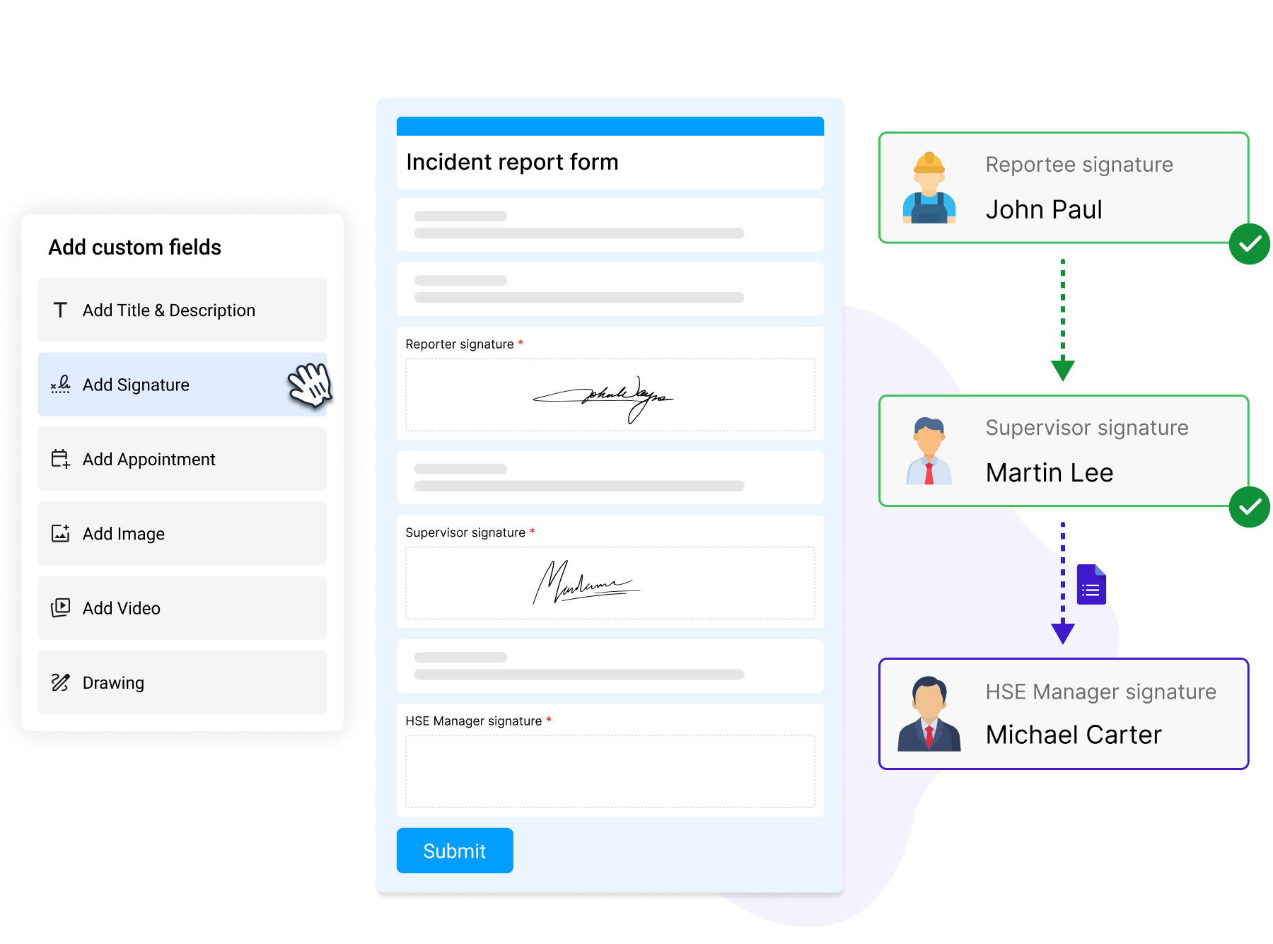 Every business has unique requirements, and Formesign adapts to yours. Create custom digital forms with required fields, conditional logic, and multi-party sign-off workflows that align with your regulatory obligations. Whether it’s ISO 45001, OSHA, DOT, or industry-specific mandates, you can ensure every form meets the standard from start to signature.