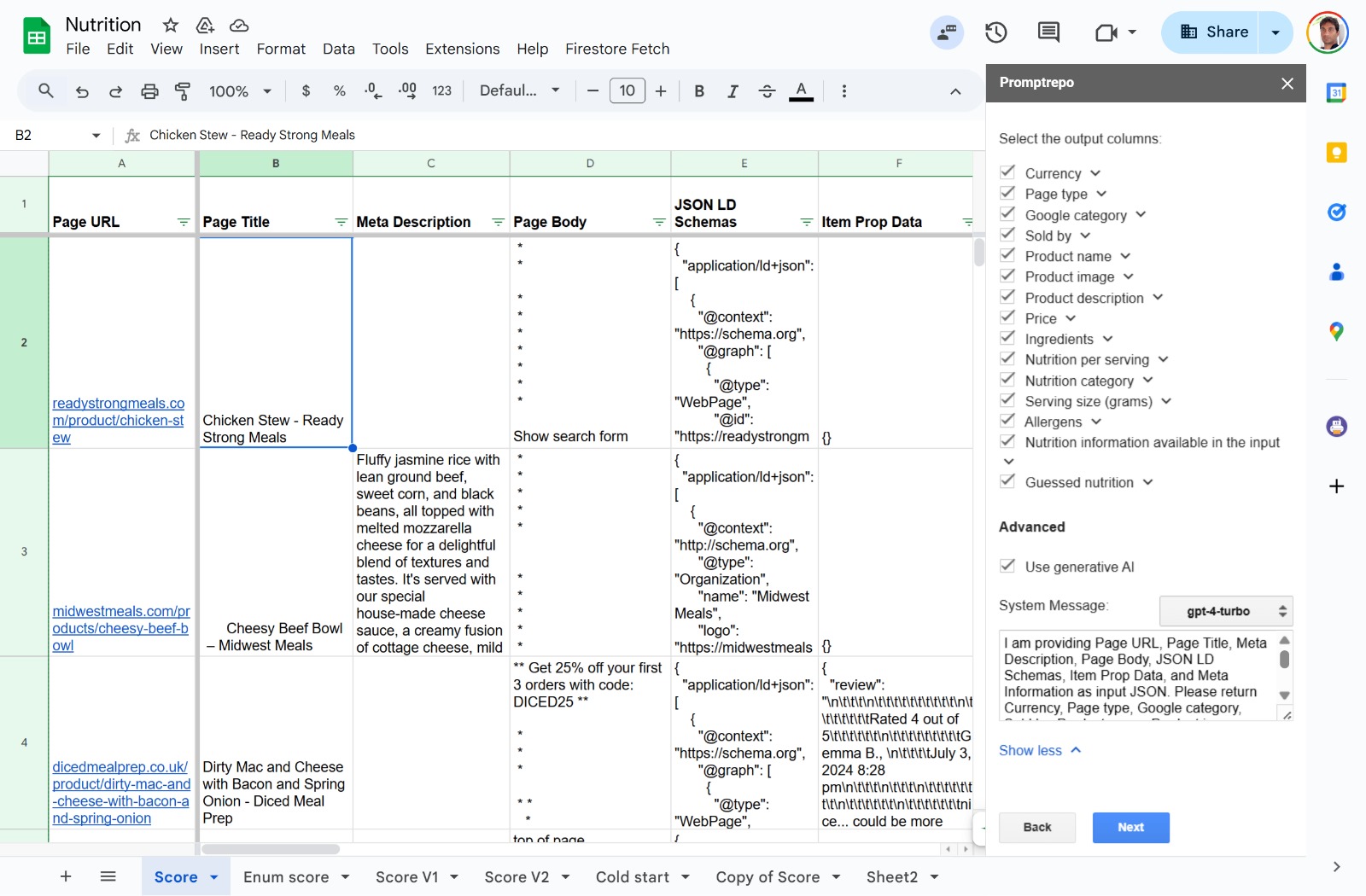 Open Google Sheets and add or import the training dataset > click Extensions > click Promptrepo > click Train AI > Promptrepo sidebar widget will be displayed > Enter the AI model name, click Next > select input columns, click Next > select output columns, click Advanced, select your preferred model, click Next > Click Publish and let Promptrepo fine tune the AI model.